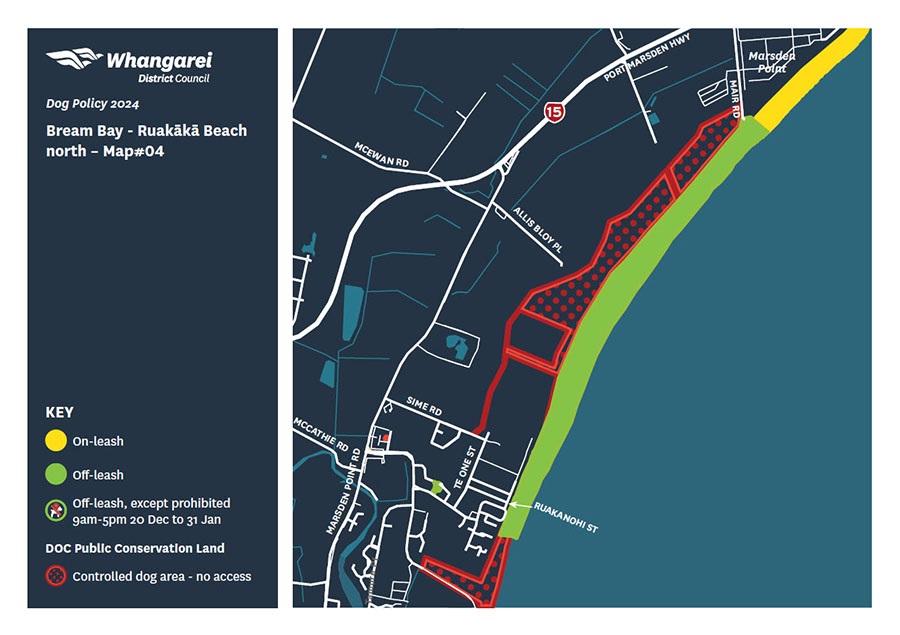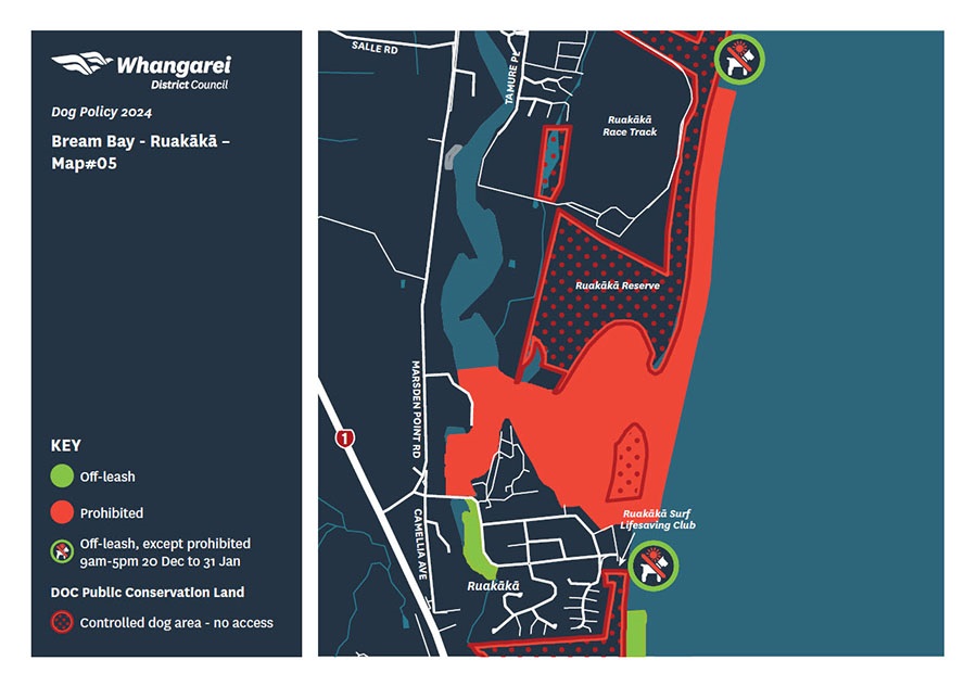 The Whangārei District Council has provided an excellent maps showing dog access rules across the entire district. This interactive map is your best resource for checking whether a specific beach allows dogs, whether there are restrictions, and what the rules are.