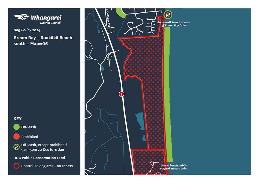 The council also provides PDF maps for specific areas like One Tree Point, Bream Bay, and Uretiti, which show the exact boundaries of dog-friendly zones. These can be downloaded and printed if you prefer to have a physical reference.