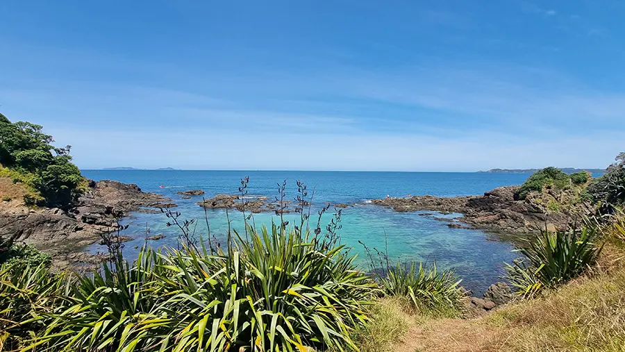 If you thought you’d seen all of Northland’s best swimming spots, think again. At the end of the Motutara Recreation Reserve headland near Whananaki North is one of the coast’s best-kept secrets; a spectacular natural rock pool that locals have visited for generations. This stunning turquoise pool sheltered by a rocky outcrop offers some of the most unique swimming on the Northland coast. The catch? You’ll need to earn it with an up-and-down walk across farmland and through coastal scenery that’s every bit as rewarding as the destination itself… and then scramble down a rocky cliff. Visiting the Rock Hole requires a moderate degree of fitness, and you’ll also need to be confident enough to climb down a few metres of steep rocky cliff before you’re near the water.